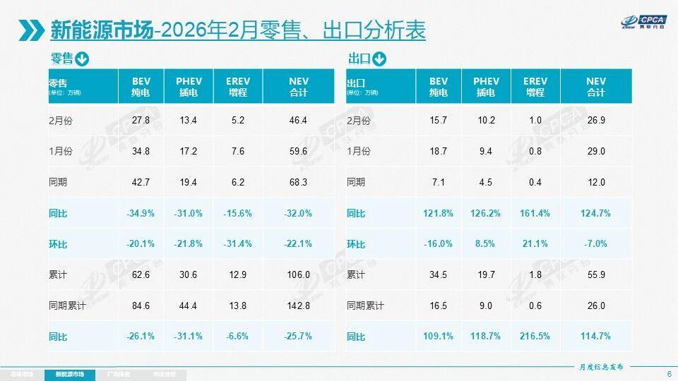 内销遇冷,后堂堂摆在台面上。而新动力零卖渗入率,更是回落到了只好 38.6%,较 2025 年同期下降 3 个百分点。