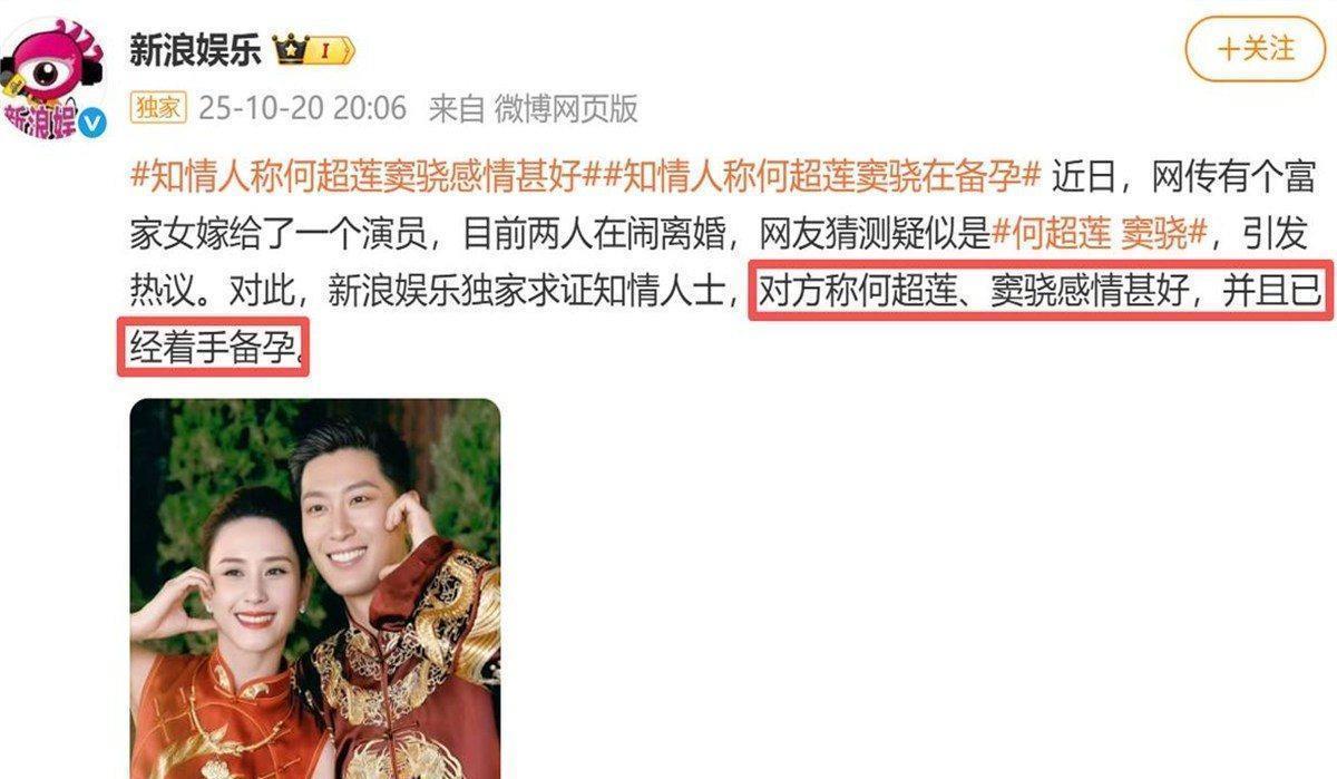 此前婚变传说喧嚣尘上,有媒体向知情东谈主士求证,对方不仅称何超莲、窦骁厚谊佳,还爆料二东谈主已开动备孕。如今窦骁正巧空档期,他俩厚谊好又或然间,不知过段时间能否传来佳音?
