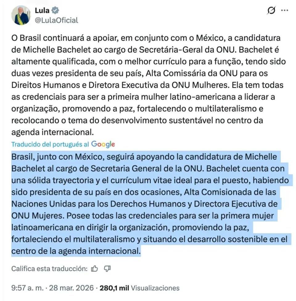https://infogate.cl/2026/03/lula-reafirma-apoyo-de-brasil-y-mexico-a-bachelet-para-sec-gral-de-la-onu-y-destaca-su-trayectoria/